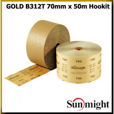 Шлифовальная бумага SUNMIGHT GOLD B312T в рулонах 70мм х 50м, на липучке,золотистая от P-40 до P-400